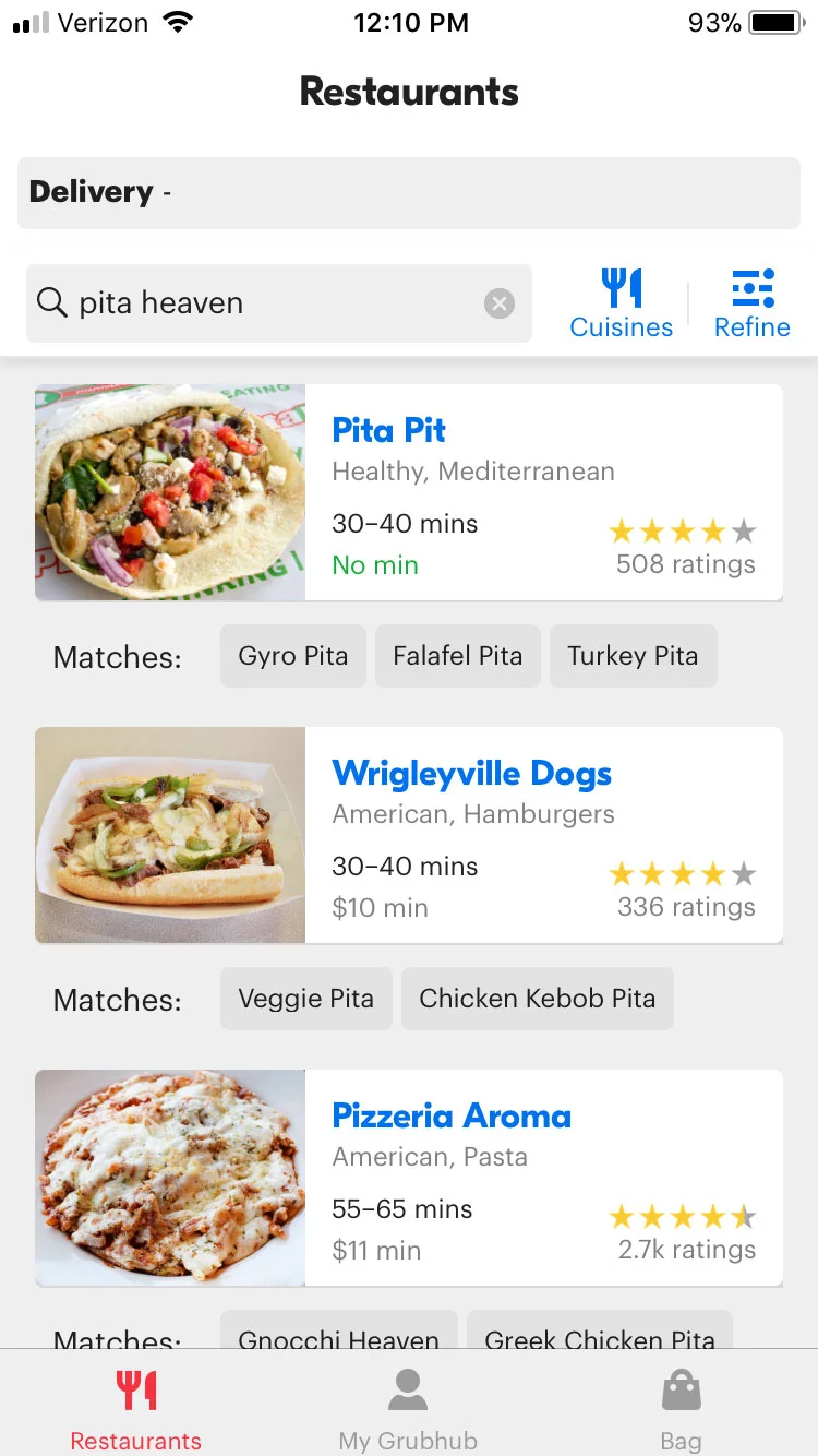 Restaurant Recommendations: In task 2, users were asked to locate a specific restaurant. Some users were unable to locate the restaurant, and Grubhub recommended other similar restaurants near their location in the search results. This feature allows users to browse the similar restaurants without having to restart their restaurant search. Many users commented on how they liked this feature.