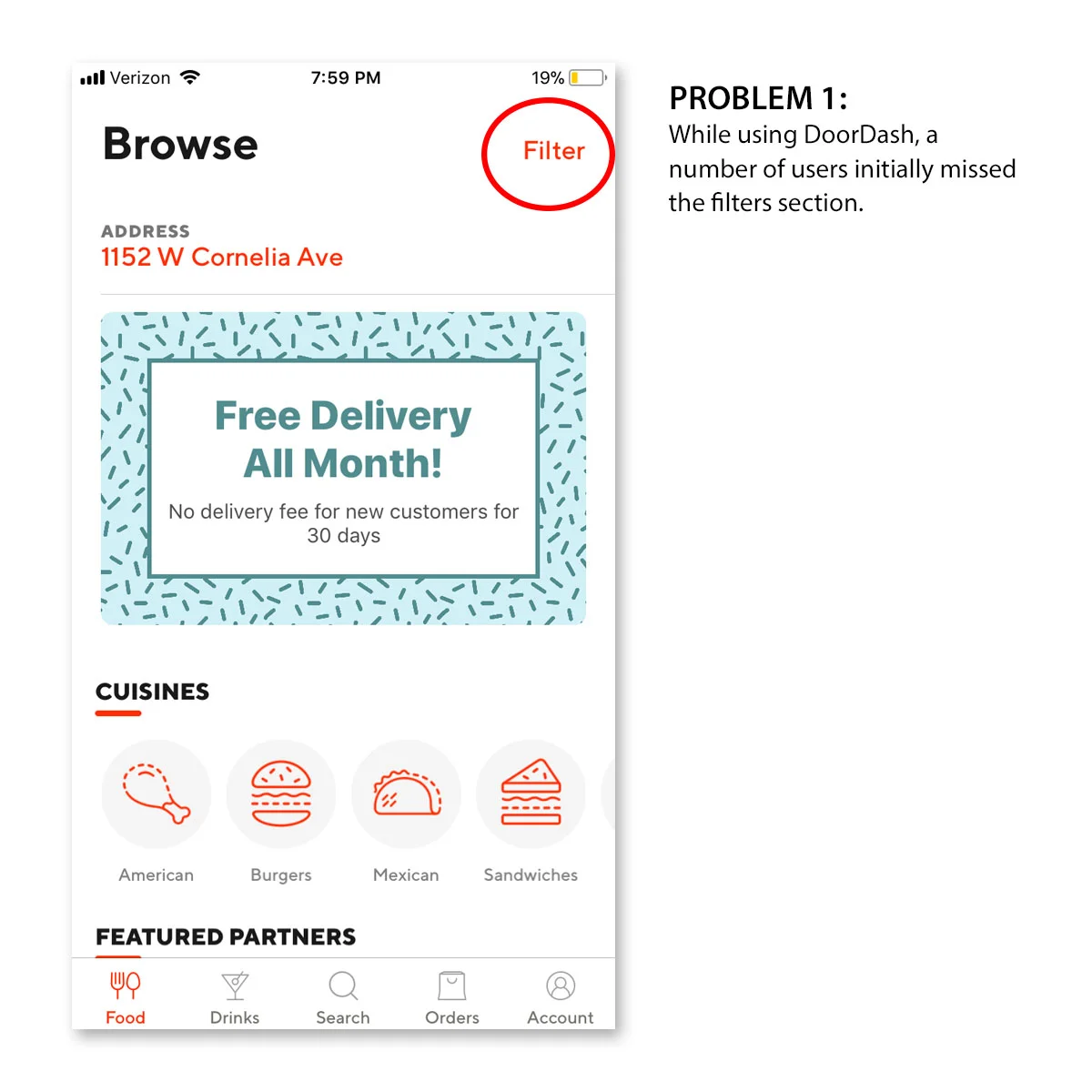 Observation: While using DoorDash for Task 1, a number of users initially missed the filters section.